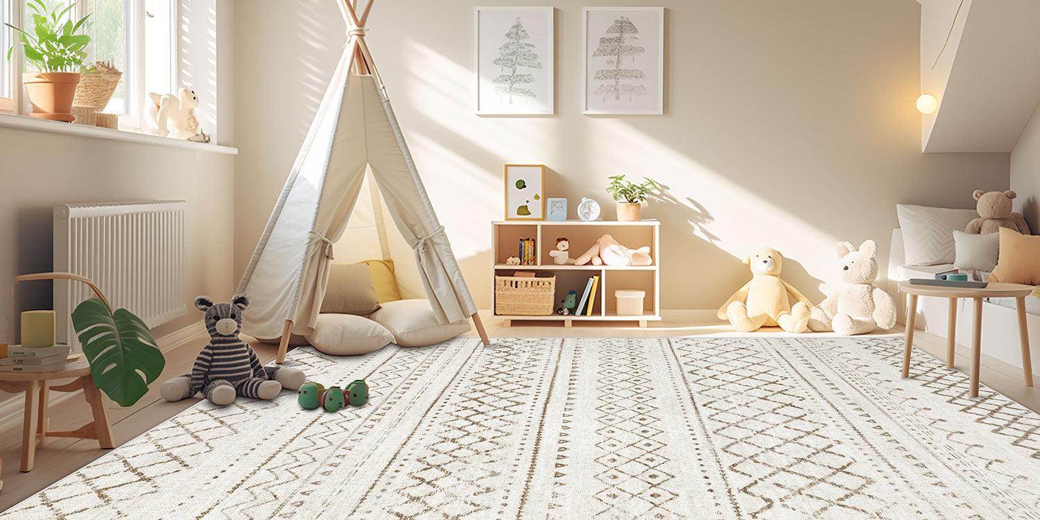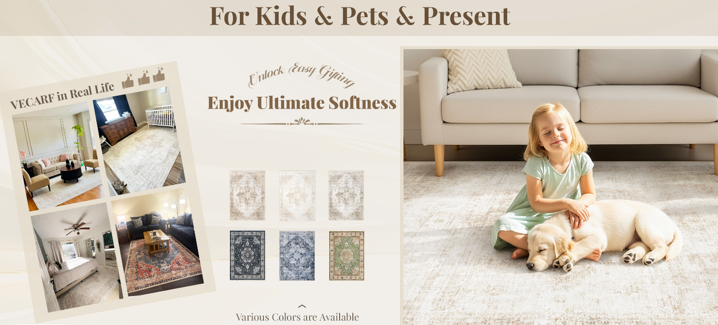 Living Room Rugs 8x10: Washable Moroccan Geometric Boho Rug Farmhouse Non Slip Stain Resistant Large Rug Low Pile Soft Carpet for Bedroom Dining Room Children Room (Beige,8'x10')